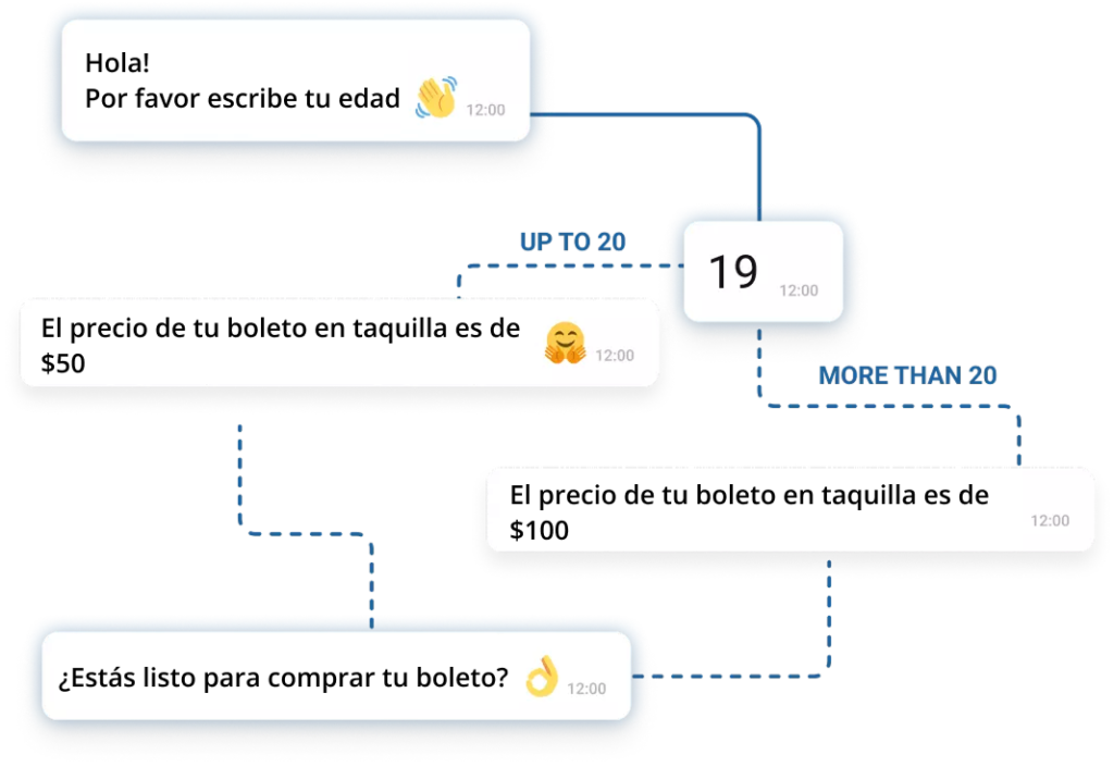 Crea guiones para chatbots y guía a tus clientes a través del flujos automatizados desde el primer contacto hasta la venta.